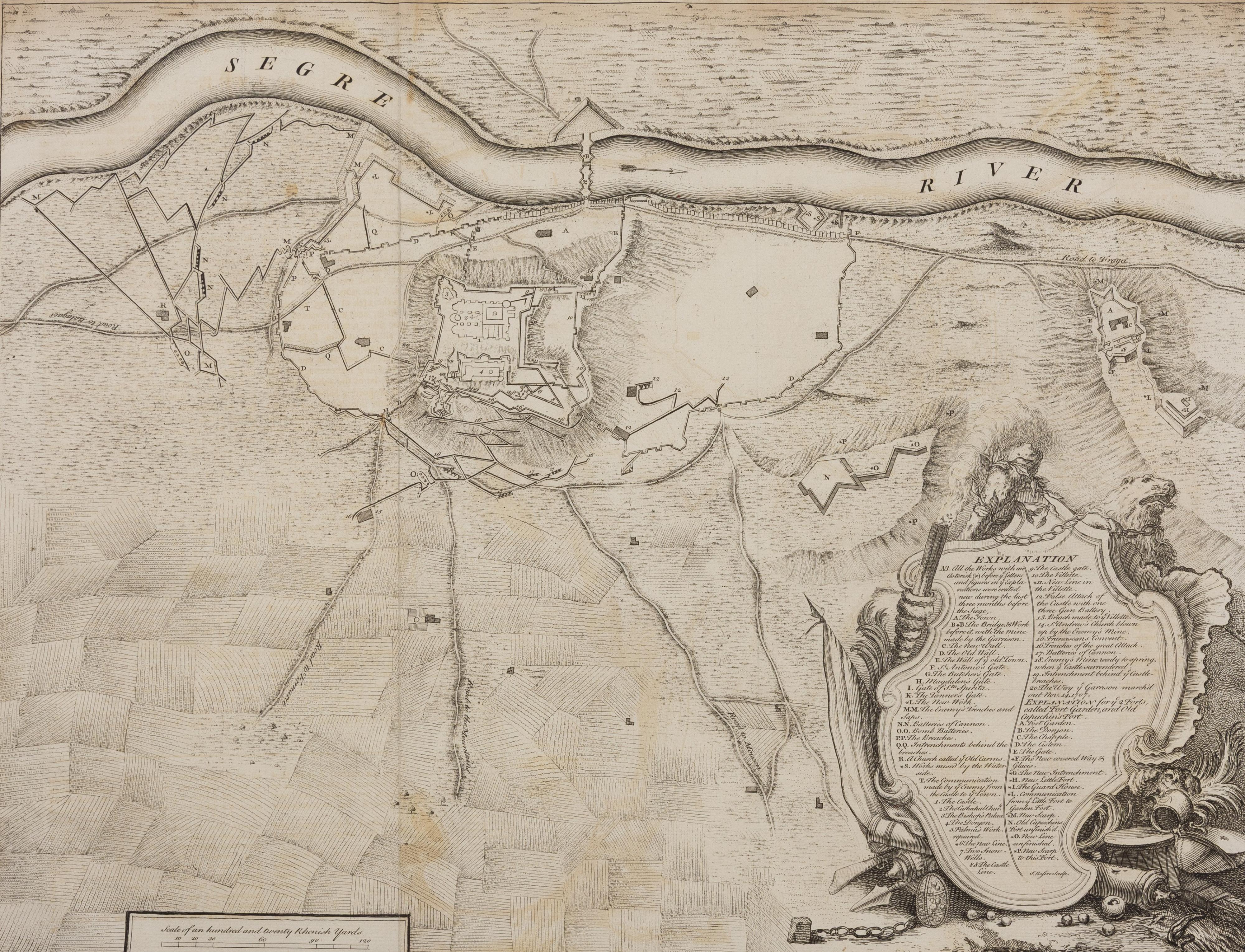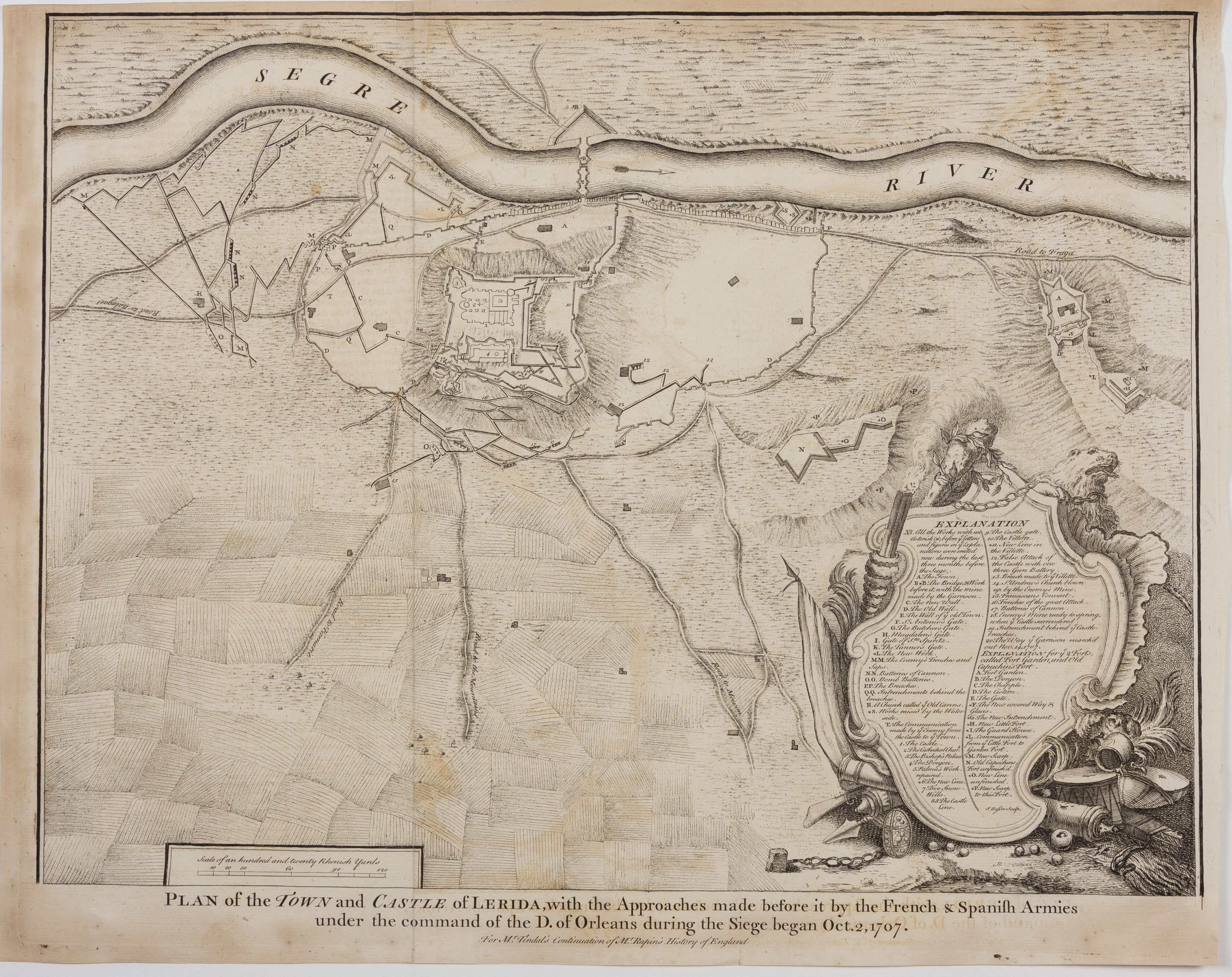 Se publicó específicamente para ilustrar las batallas en las que participaron tropas británicas durante la Guerra de Sucesión Española (1701-1714), capturando el interés estratégico de Lérida como plaza disputada entre borbónicos y austracistas. El estilo preciso del grabado en cobre refleja la cartografía militar inglesa del siglo XVIII, con escala y orientaciones claras.